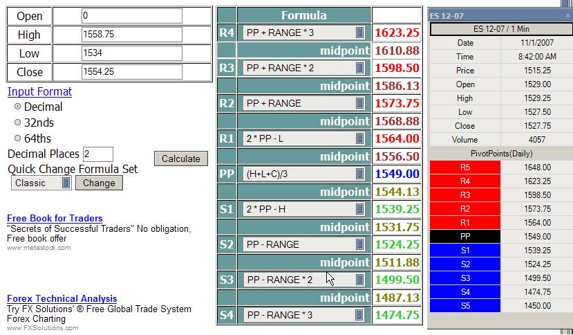The formula used in the calculation of Classic Pivot Points are: