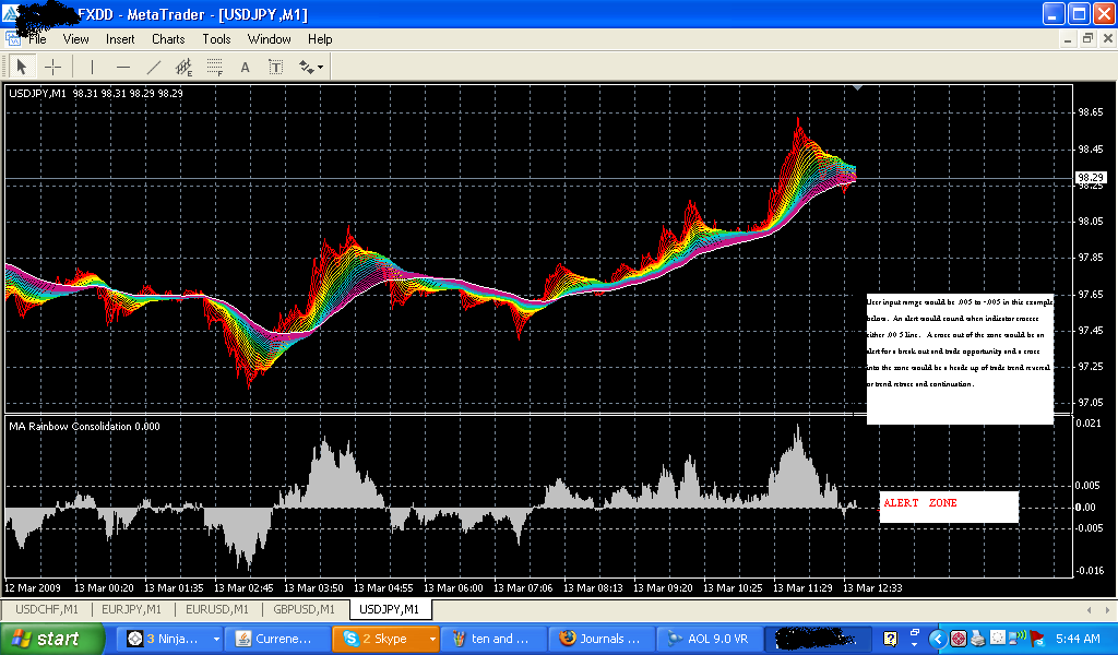 I was wondering if anyone could rewrite the following file into ninjascript. This is an mt4 file I find useful for rainbow trading. I found it on FF.