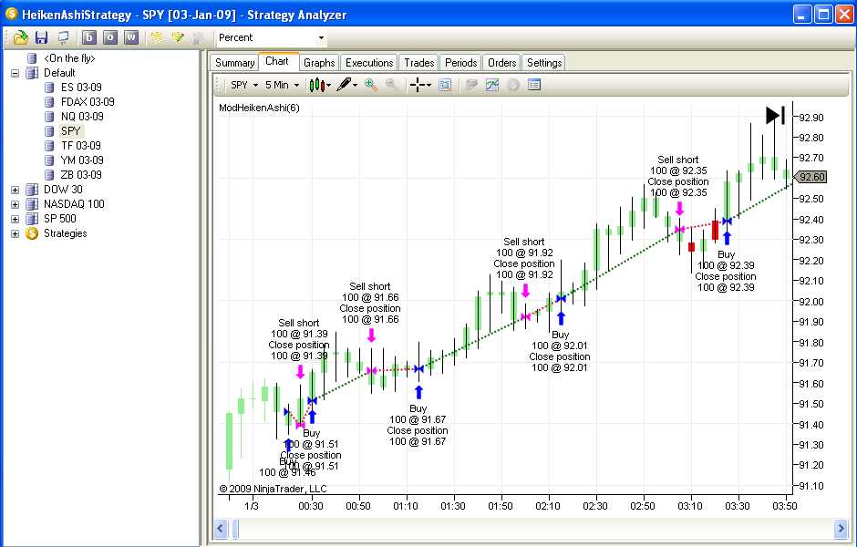 I am trying to use the ModHeikenAshi indicator for entry and exit in a strategy.