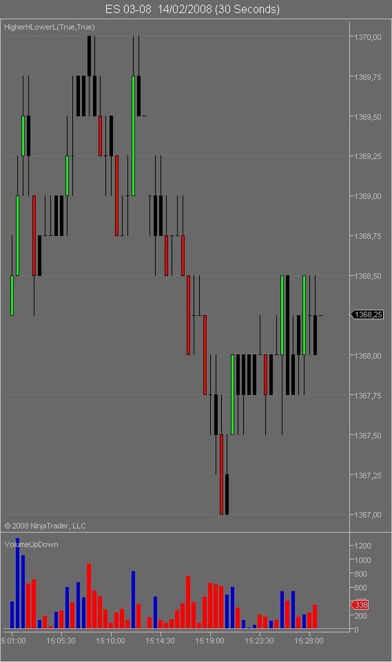 ChangeLog: Updated 14th Aug 2007 - Vers 0.2 - I had left a debug line in the code which meant that down bars were always red, rather than being the colour set in chart properties.