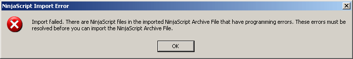 Attached screen shot of what I get if I try to import using Ninja import utility. So I tryed copying .cs file to My Docs as I have done in the past and compiled.