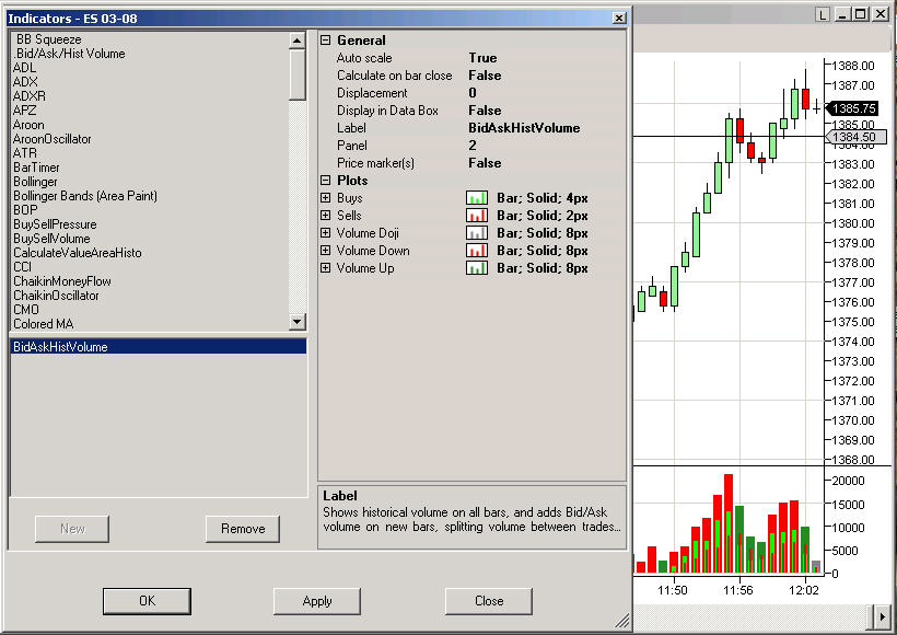 I placed both built-in BuySellVolume indicator and this BidAskHistVolume indicator on a 1-minute ES chart. I watch the action during the quiet night session. I found they disagree with each other more often than not. Interestingly, neither constantly agrees with what shows in the Time & Sales window. I looked at the code of the two indicators and they are quite different.