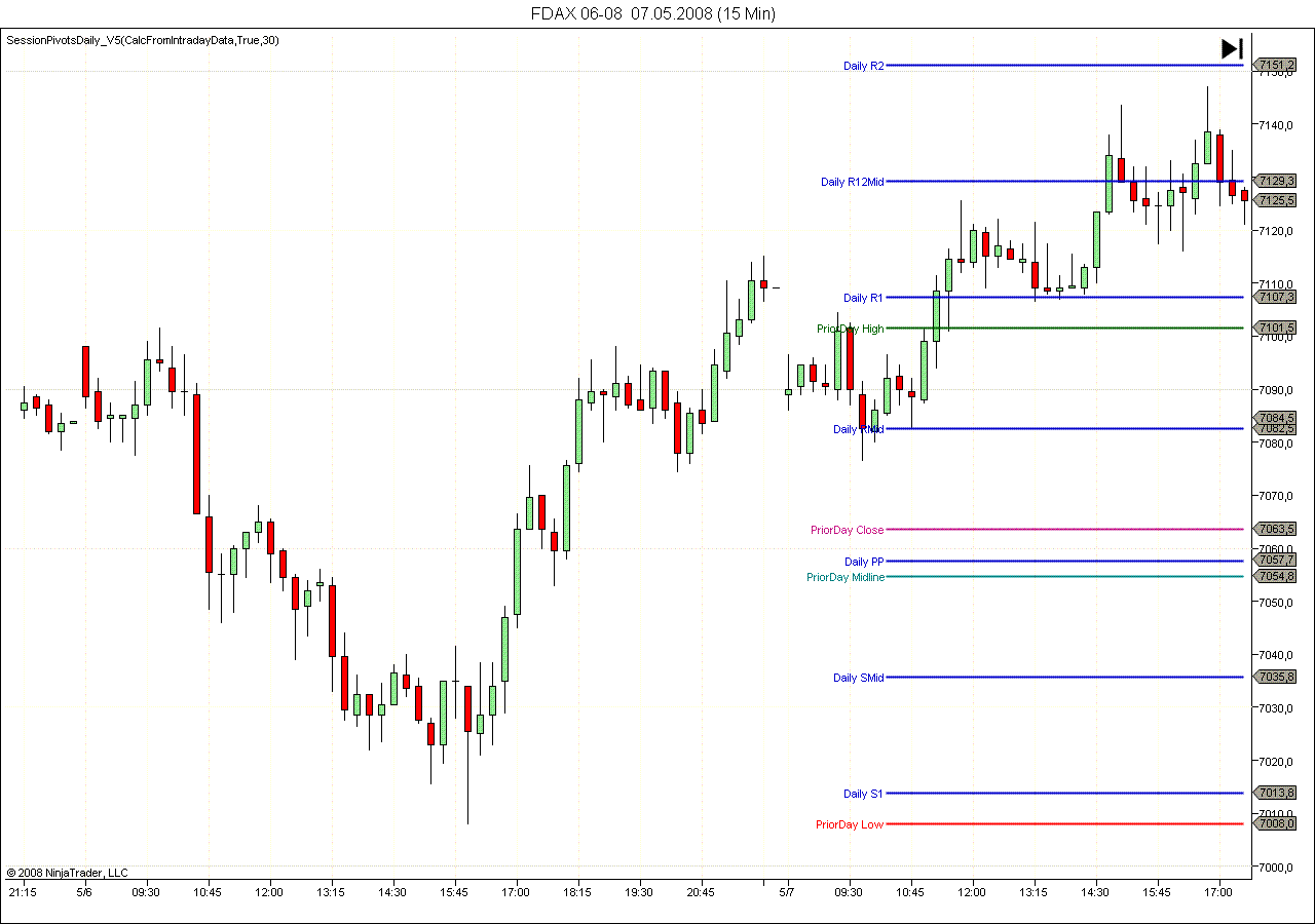 With the new Start- and End-Times I can define a Sessions begining and end, but the close value will be taken from the days close and not from a specific time (Session Break Time), as would be necessary. Your indicator now displays the exact same values as Ninjas Pivots indicator, since it follows the same logic.