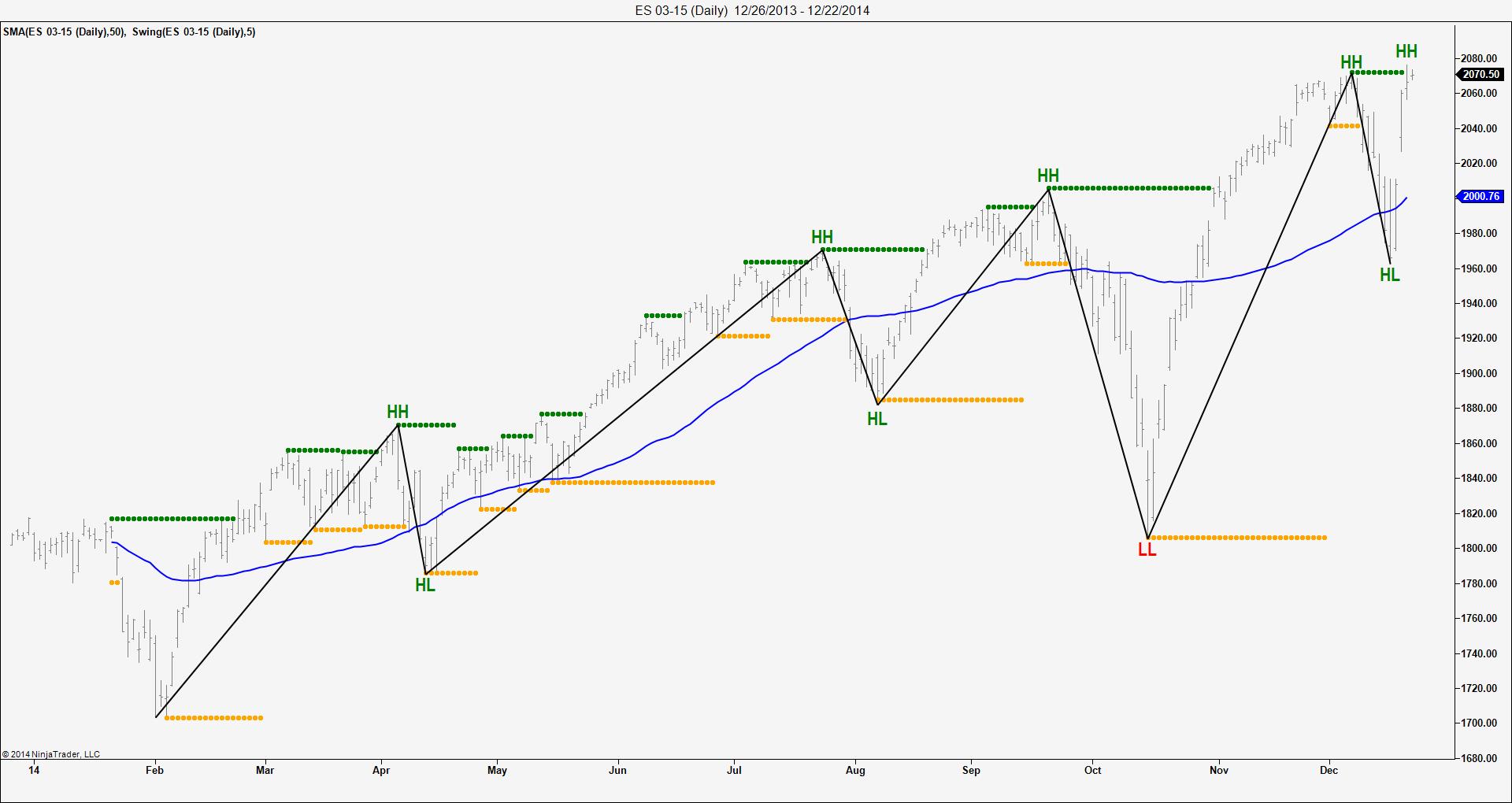 a 50 SMA. If your looking at Swings above or below the 50SMA, How many Strength or Bars is that? That's my point! If the swings could be plotted according to crossing of the 50 SMA, then we would have true Swing Highs and Lows Above and Below the 50 SMA!