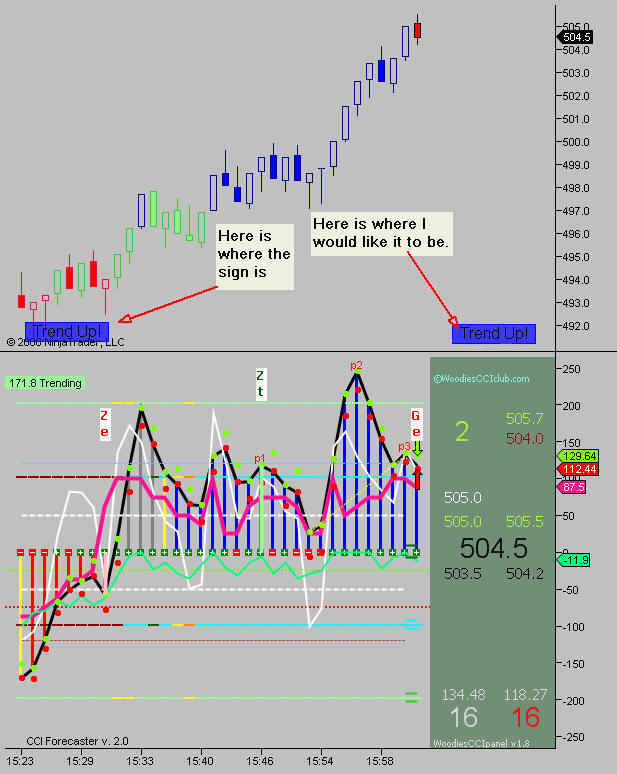 eDanny In addition to my previous post I'd like to ask you this; I wonder what could I do to move the Trend Sign to the right side of the chart (see picture attached). I have moved the chart's right side margin to 135 pix to accommodate for the green panel below and visually, because the way I have my charts, would be better to place the Trend UP/Trend Down sign above the green. Less moving my eyes left to right. I do day trading/scalping and all my focus is on the right side of the chart.Originally posted by Javier View PostNo apologies eDanny and no disappointment. Thank you for sharing your work. One little step at the time is how we move forward. Keep up your work.
