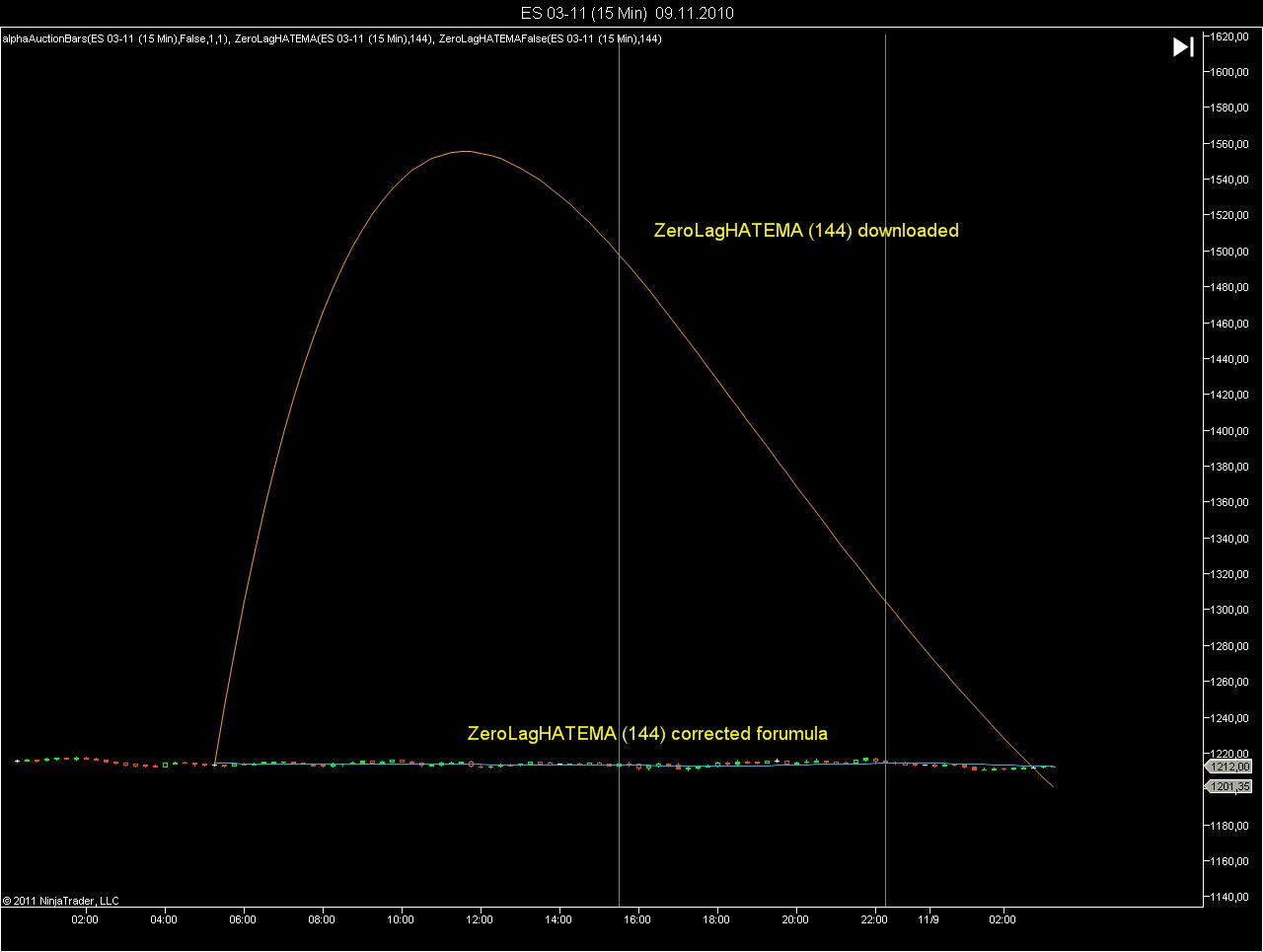 In the original formula the values assigned were 0. Imagine if you have ES trading at 1265, and the first value of the calculation for your moving average is 0.