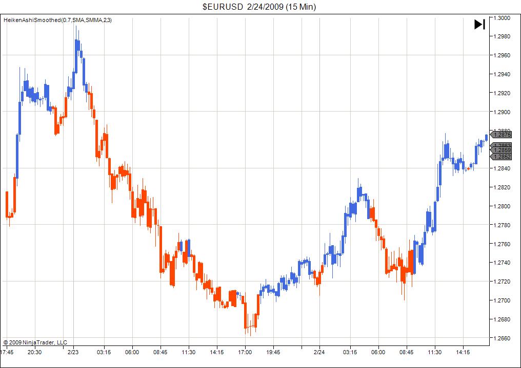 I don't suppose one of you guys have coded the smoothed HA or another HA to change the original price bar or candle to the HA colour rather than plot the HA alongside the the price bar/candle. As I mentioned on this thread ( http://www.ninjatrader-support2.com/...ead.php?t=6911 ) yesterday. I like the HA change of colour but not the actual candle so wanted to combine it with the original price bar/candle.