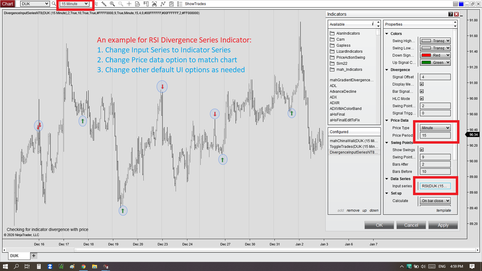 Please first read the explanation notes that come with the indicator (in User Apps downloads), and also additional notes at the beginning of the code if you can open it in NinjaEditor.Originally posted by DTSSTS View Postzoetuck or anyone using this Divergence InputSeries Looking for some help on settings for parameters and applying input series