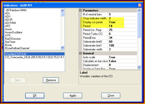 I am attaching the parameters for the Woodies CCI...... you can change the 'Display CCI Panel' to true to get that box....