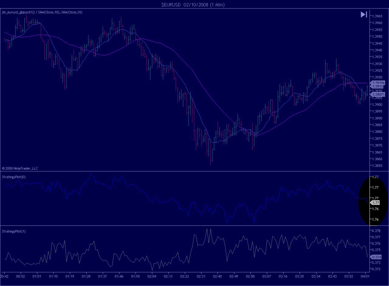 I just built a chart plotting to instruments, say USDEUR in panel 1, and GBPUSD in panel 2.