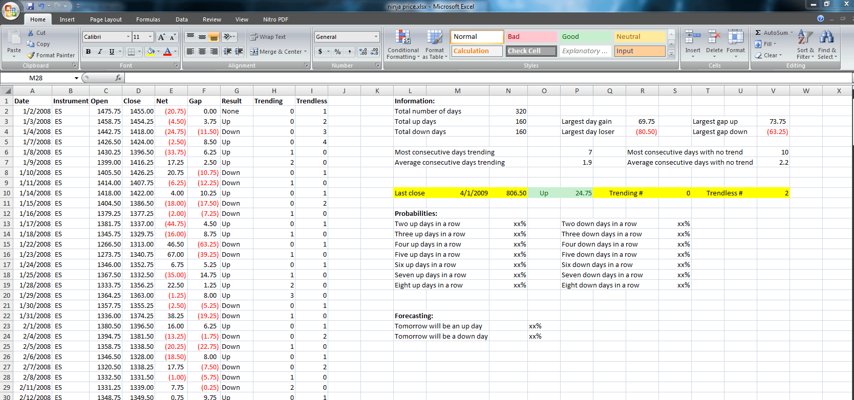 Thanks to the generosity of others, here is the new Excel spreadsheet with 5 years of minute data inside of it, along with the rest of the formulas (have made no more progress on the formulas yet).