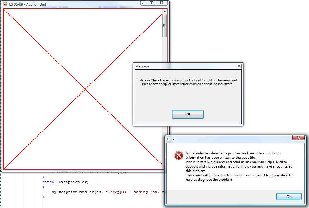 "Error on triggering custom event for indicator AuctionGrid5: Index was out of range. Must be non-negative and less than the size of the collection. Parameter name: index"
