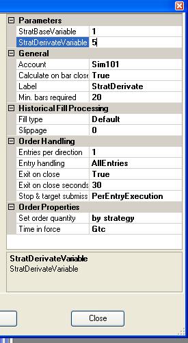 2. The problem is that I have strategy specific properties that would only be applicable to some strategeis and not all. I don't want to litter my Properties dialog box with Parameters that are not even used in a given strategy.