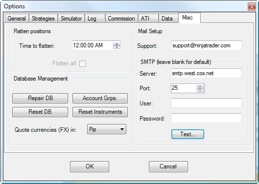 See attached screenshot for my settings. You'll see my SMTP server in the "Server" field as I use Cox's Internet service and all SMTP traffic has to go through their SMTP server. I can use this server just fine in Outlook, and user authentication is not required, though I've tried it by putting my Cox user name and password in there but it still doesn't work.