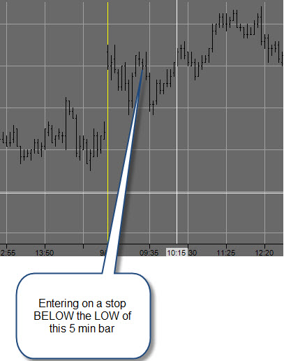 As you can see with the above, I'm trying to enter on a stop below my primary bars(5min), but the actual entry....and my exits for that matter I would like to be taken with the secondary bars(1min). The above code works fine with the entry on the primary bar(the 5min), where 'Fade' is the number of tics below to place the entry stop.