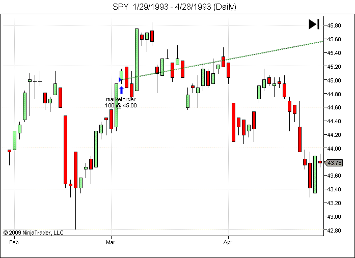 3/2/1993 12:00:00 AM Entered internal PlaceOrder() method at 3/2/1993 12:00:00 AM: Action=Buy OrderType=Market Quantity=100 LimitPrice=0 StopPrice=0 SignalName='mar****rder' FromEntrySignal=''