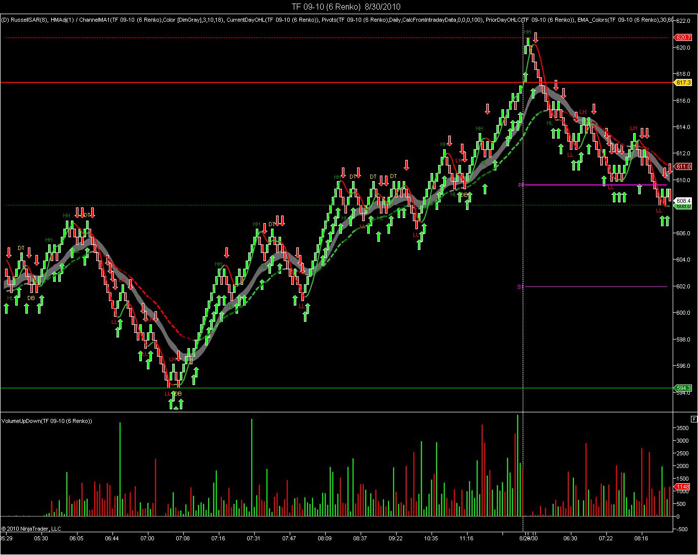 DrawArrowUp("My up arrow" + CurrentBar, false, 0, Close[0] + -20 * TickSize, Color.Lime);