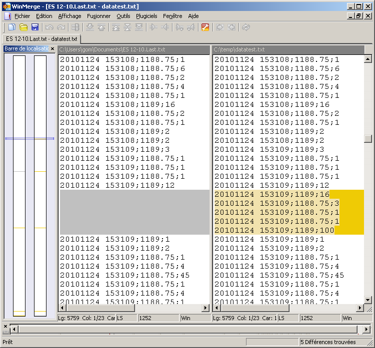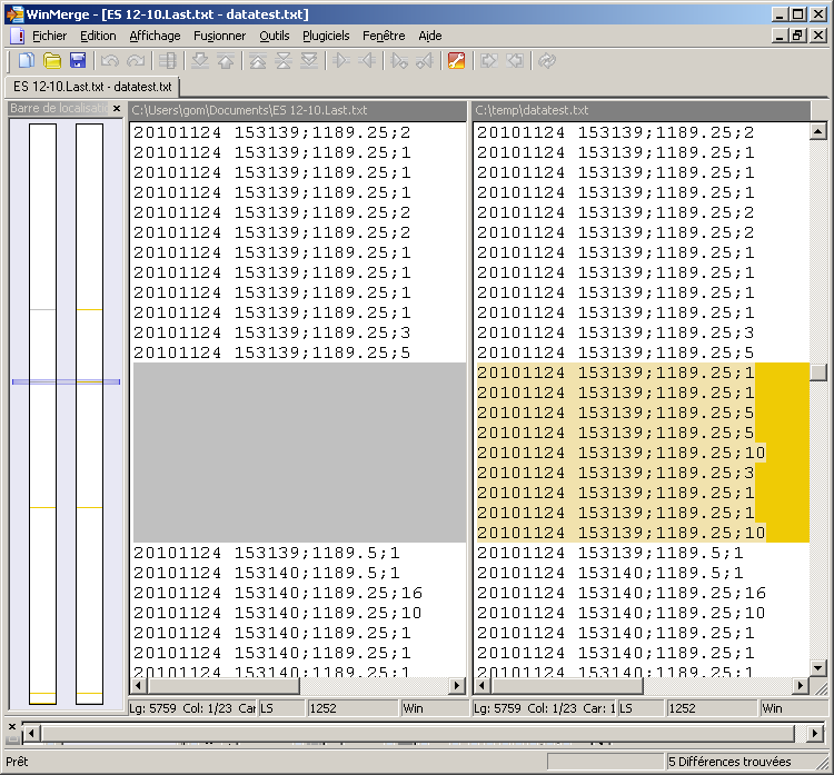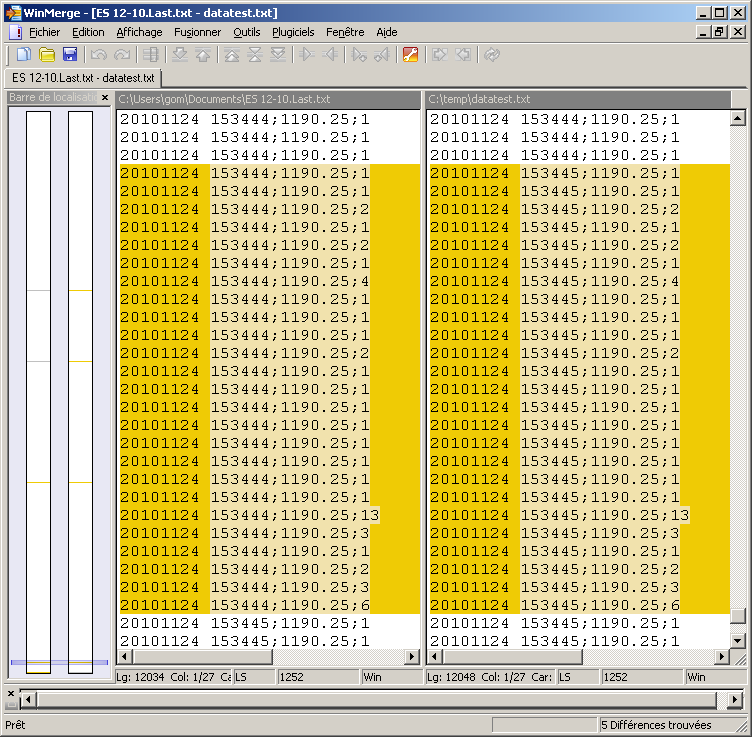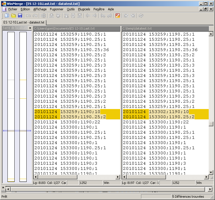 Here are my results, on an excerpt of 15:30 to 15:35 :