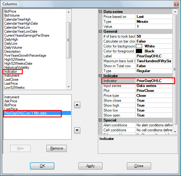 Adding indicators to Market Analyzer