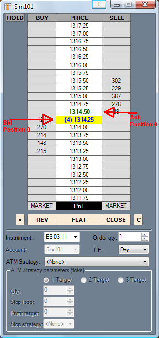 In the help menu in NT, "zero based position" is referring to the lowest price on the Bid?
