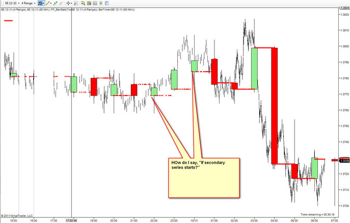 I will have other questions, but my first question is, how do you reference when a new secondary bar starts? I.e. each time a NEW hourly open starts, how do you say, "If secondary series starts again.....?" Here is a visual.