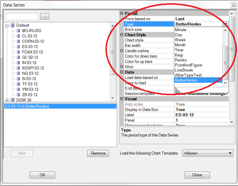 The bartypes will show up in the Data Series dialog (right click chart and click Data Series) , in the Type field.