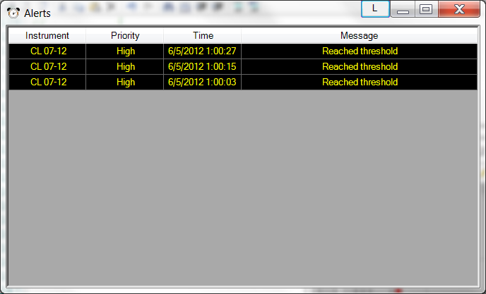 Alert("Alert0", NinjaTrader.Cbi.Priority.High, "Reached threshold", "", 10, Color.Black, Color.Yellow);