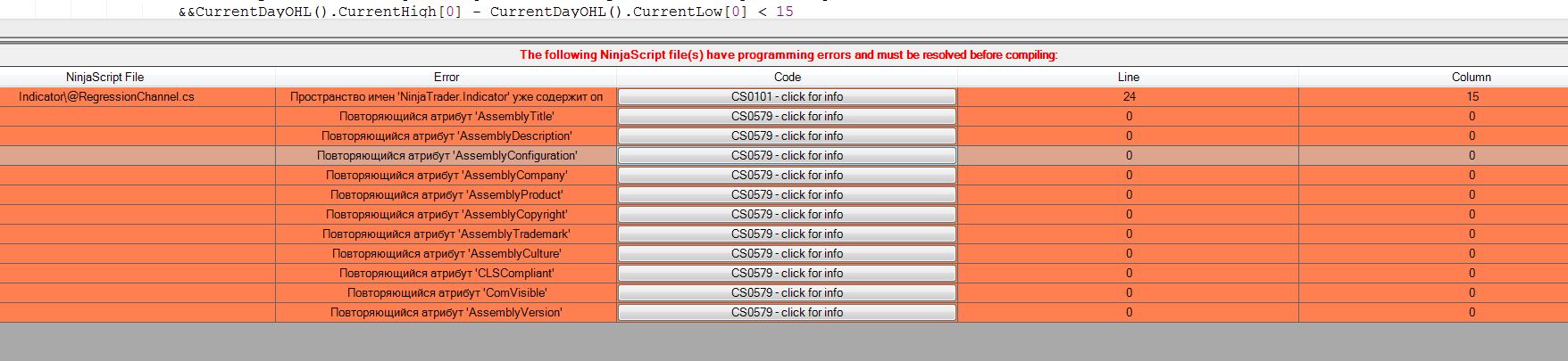 The problem is that new strategy (I tried to create even an empty one) is not compiled, mistake SC0101 pops up "Array of names NT already contains definition for Regression Channel" and other double indicators (I'm not at all referencing regression channel indicator. The same error appears in empty strategy)Last edited by Andrei Petrov; 10-22-2012, 02:54 PM.Tags: None