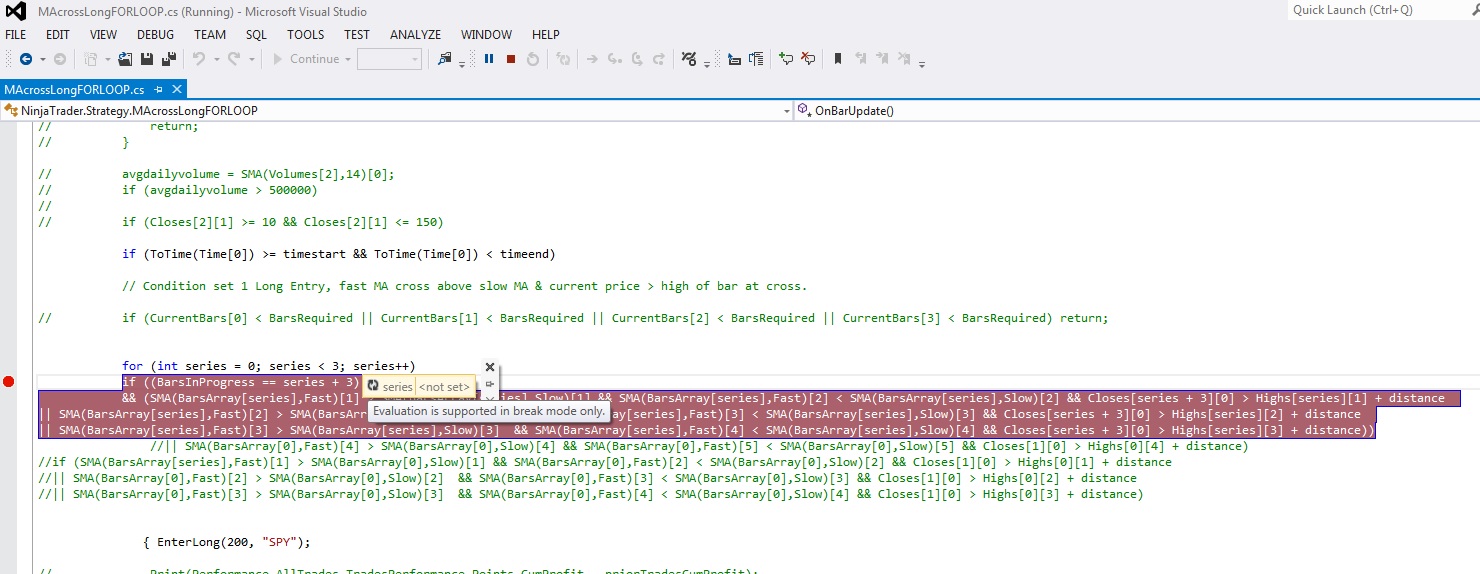 Using Visual Studio for break point