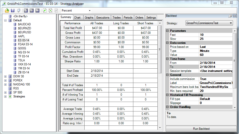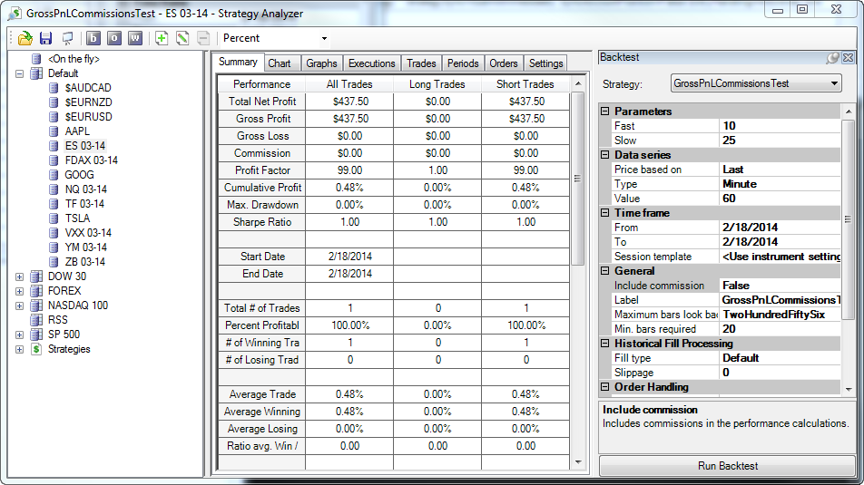 Simple question: Does .AvgProfit return net profit, including deducts for commission and slippage if "Apply commission to PnL calculations" is checked in the Tools > Options ? General tab, a single side commission value is included in the Tools > Options > Commissions "Futures - Simulator" section (i.e., $2.50, which would be $5.00 roundtrip) and a Slippage value is included in Initialize() (i.e., "Slippage = 2;")?