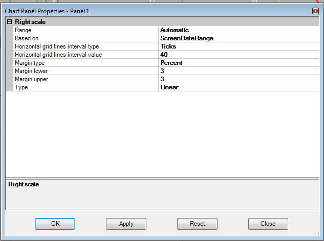 Is it possible to programmatically set the right axis horizontal gridlines via NinjaScript? If so, how might one access those settings?