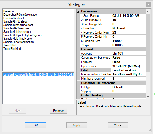 but, whenever I bring up the properties window in order to start the strategy and set the user defined inputs, the wrong date comes up. For example, in the screenshot attached, you will see the properties window. This is a brand new instance of this window immediately after restarting NinjaTrader and connecting it to a data feed. It says 8 July rather than today which is 14 July. Why is that, do you think, and how can I set it so that it will automatically start up with today's date?Code:private DateTime startRange = DateTime.Today.AddHours(2); // Hour that the range will start