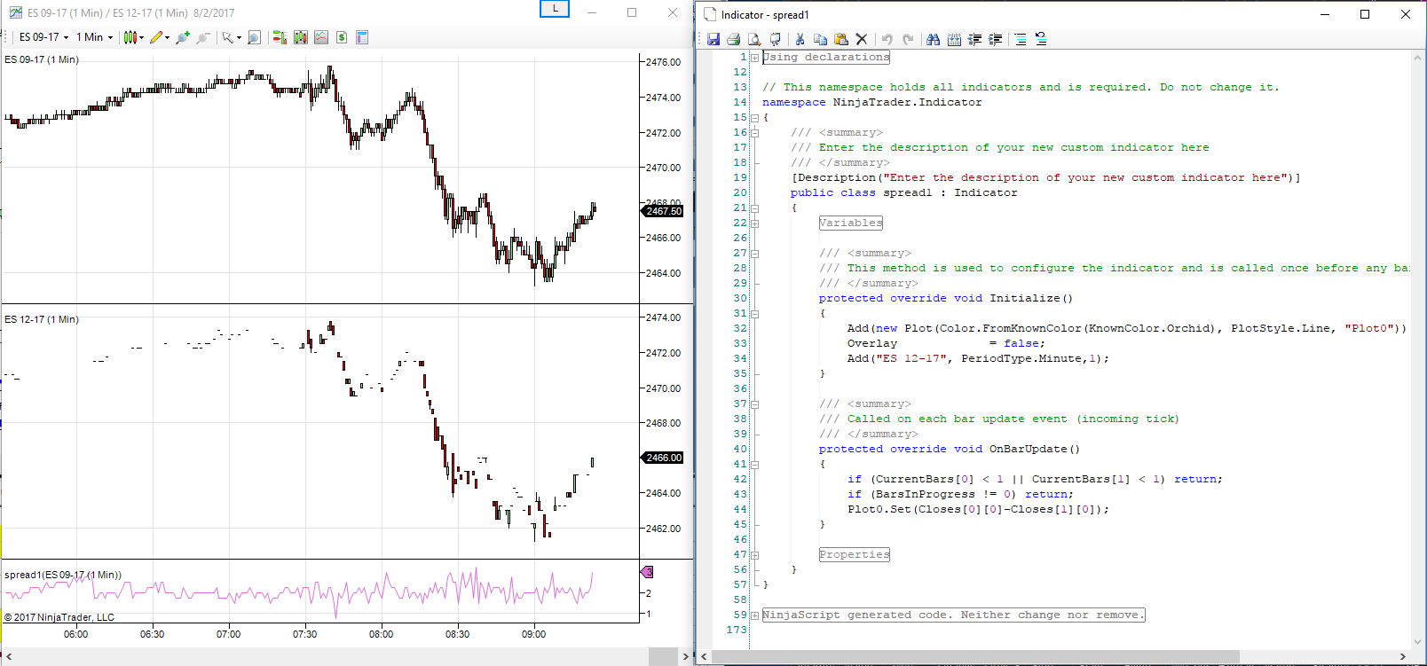 I am testing an indicator which calculates the spread between two instruments.