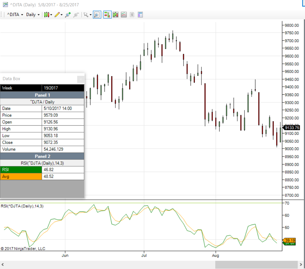 One function missing from NT7 is visible output data neatly displayed, specifically for oscillators. In the first image taken from my FXCM TradingStation/Marketscope 2.0 the current data for the ADX indicator is visible and changing in real time alongside the left side of the chart. Each parameter is colored according to the color the function and is displayed neatly. NT7, on the other hand displays this info on the right side of the chart along the y axis. This often leads to overlapping labels. Does anybody know of a possible solution to this, if any should exist?Tags: None
