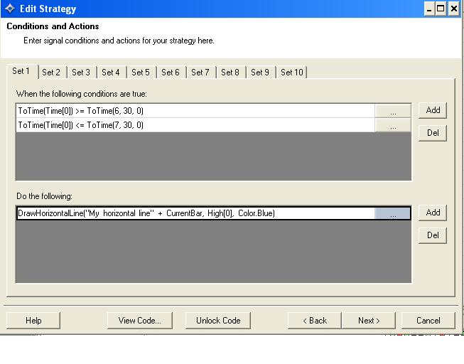 -Plot 2 horizontal lines - first hour high and a first hour low (first hour the market is open)