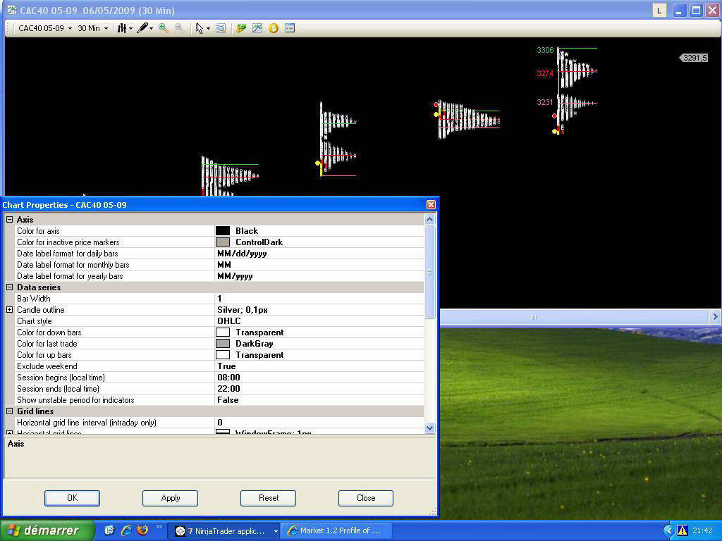 Applying the local time by exe. 8h00-22h00, (chart property) it does not work.