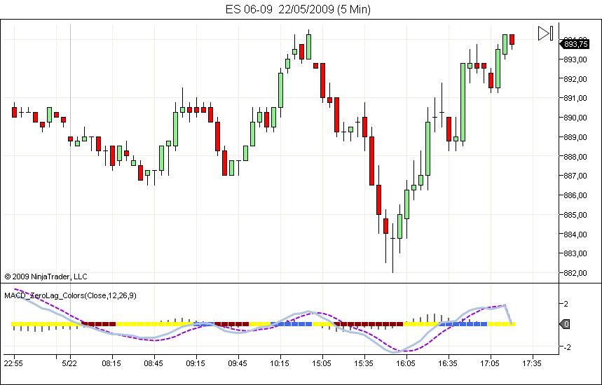 The zero line will be colored based on if the MACD line is above or below the average line, and if the overall trend is up or down.