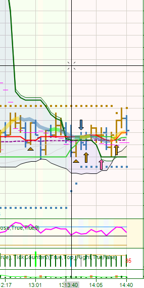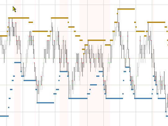 The goal is to create a trading range fill when the range narrows and stabilizes. I can already do this fine with back color but I would prefer to have it painted only between the Donchians rather than the whole screen. Small thing, but nice to get right and also opportunity to learn more about coding in Ninja.