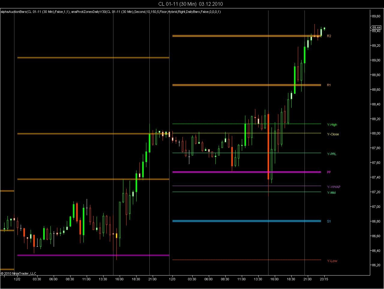 (3) You could try to load minute data on top of the chart data and calculate pivots from that minute data by using the settlement time (average price of settlement period).