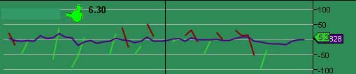 My indicator is simply supposed to draw a green line when up, and red when down. Here's the logic: