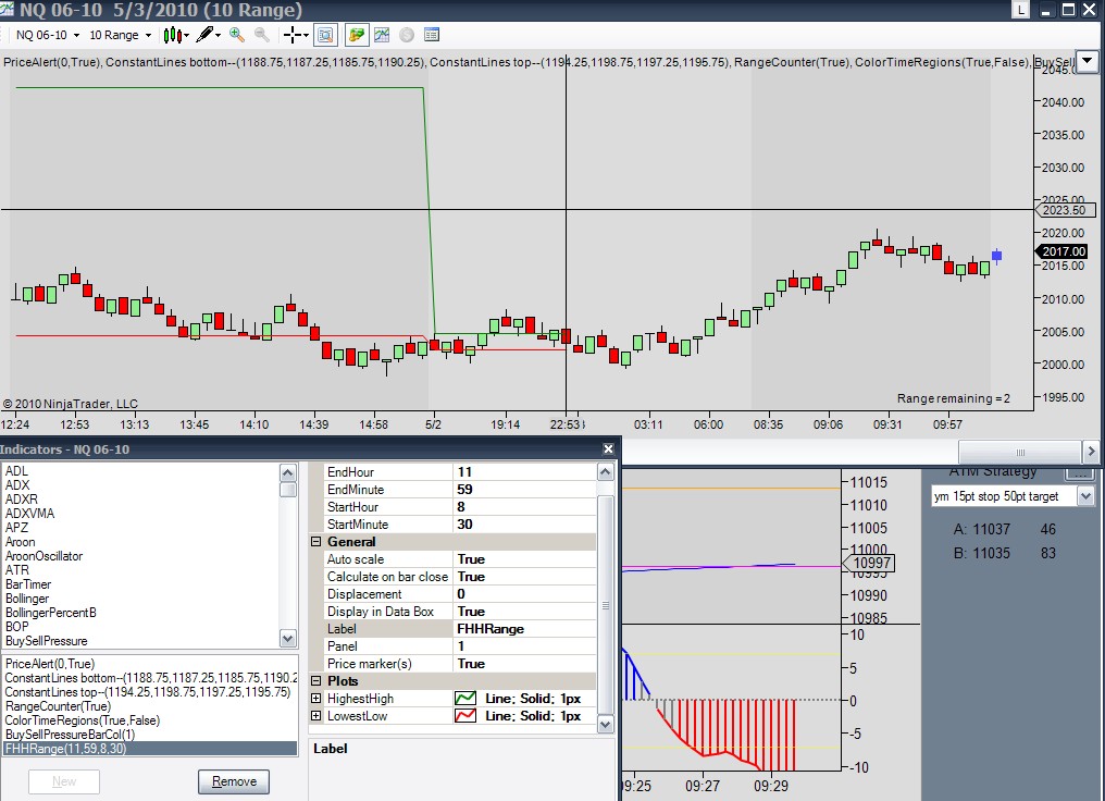 After downloading it I cannot get the indicator to show the correct time range. I'm using the indicator on a 24hour chart and I want it to only display the highs and lows of the 1st 3 hours of the intraday session. In my case that is from 8:30 to 11:30 a.m. I've included an attachment showing what actually happens when I enter these times. You can see how the colored lines don't even extend to the current day. In the attachment I also show the indicators settings.