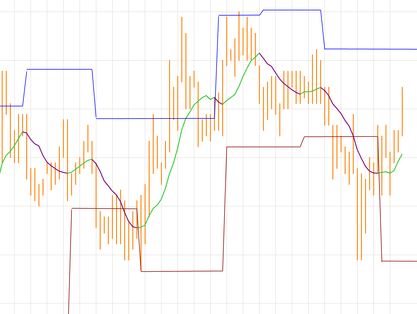 For lower line, when HMA turns green, then look for the lowest swing low and start drawing horizontal line until it reaches the next pivot swing.