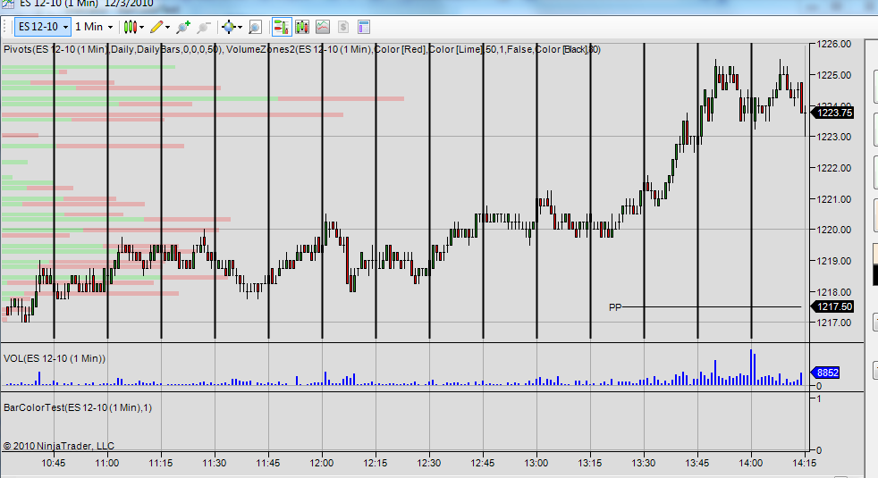 thank you for your kindness. Now how do I make it display all the way up and down panal 1 (price) rather then only on the price bar. I think it probably has something to do with the code calling for black and I use a black chart background, but when I tried to change the color in the code it won't compile, and if I stipulate a color in the indicator, it doesn't change color. I am sure it is something very simple, but I am just not up to speed in the ninja coding language.Originally posted by NinjaTrader_RyanM View Postsmartguy,