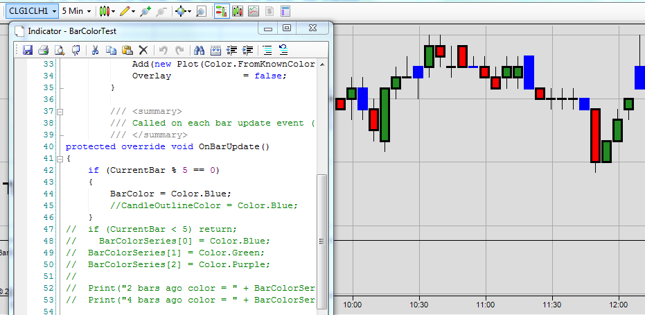 • The Help information says that CandleOutlineColor will use BarColor when CandleOutlineColor is not set (not the DataSeries colors)