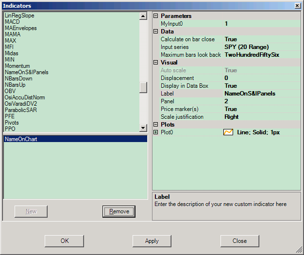 In the picture above: you'll note the Label <Name Text> affects the indicator name in 3 places. Setting it to blank (eg: " ") would cause the List of Indicators to appear empty thus preventing the Trader from knowing which of the blank indicators they want to choose.