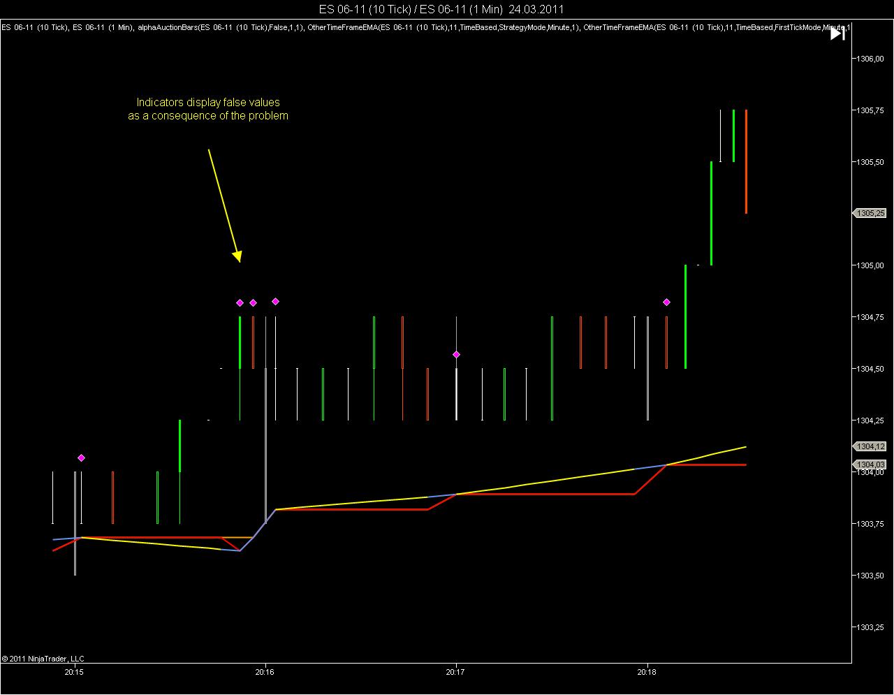 False 24.03.2011 20:15:56 0 FalseThe test was conducted on a 10-tick chart (condensed ticks) for ES, with the second called bar series being a 1 minute series.False 24.03.2011 20:17:00 1 False