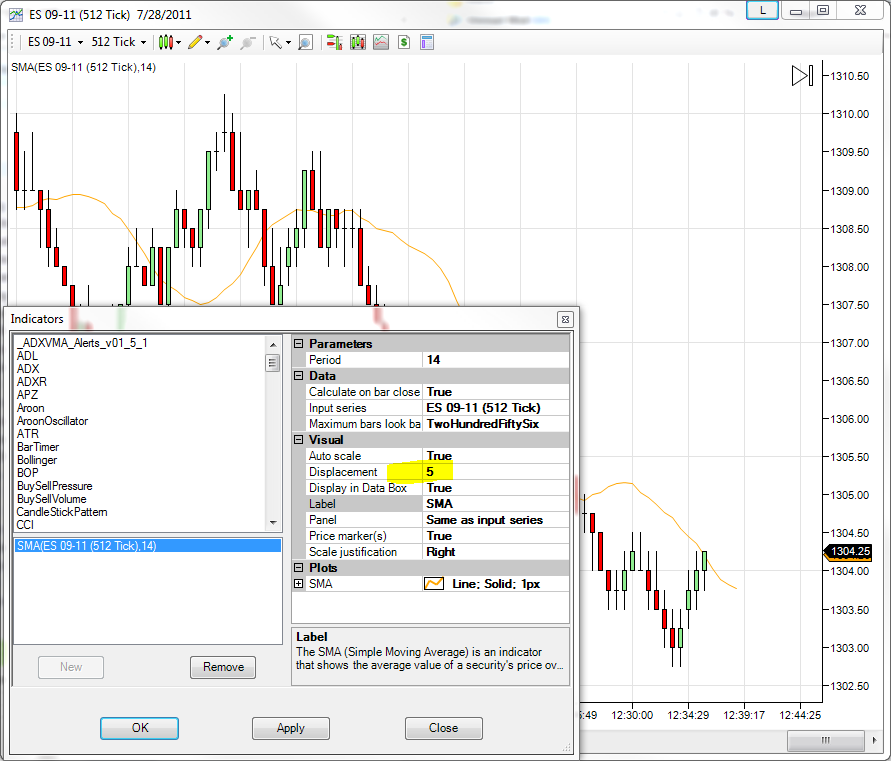 I know you can displace the moving averages on the chart,