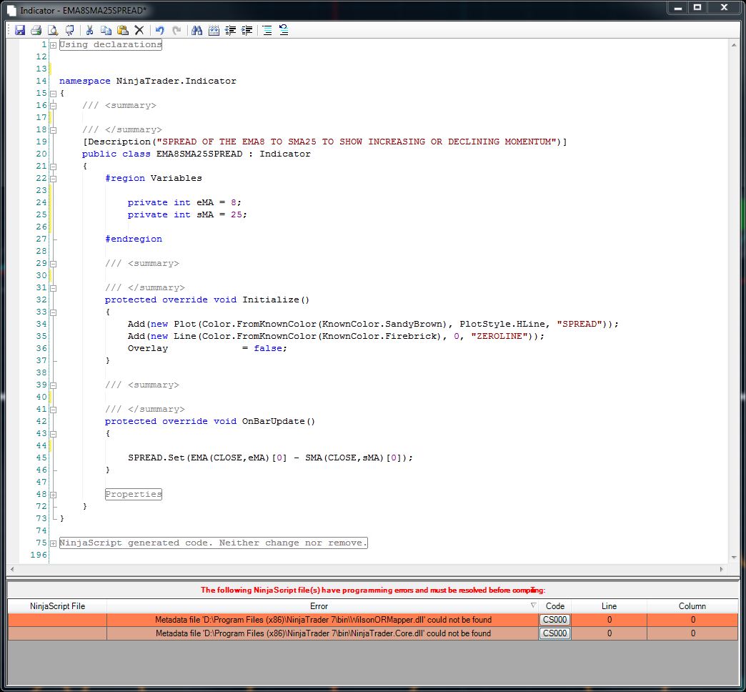Metadata file D:\ yadayada\NinjaTrader.Core.dll" could not be found