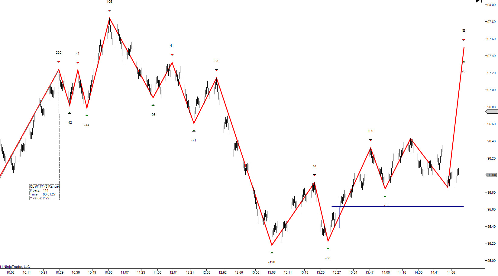 Ok, will work on that. As is now, I have a script gathering a bunch of other info about the day. I only tell it to run on the last bar of the session. So yes, for now I just need to figure out how to make it go back and find a swing point/time.Originally posted by NinjaTrader_RyanM View PostWhat technique are you using currently? I would try to get a basic example working, where you access 1 historical instance of a zig zag high using .HighBar method.