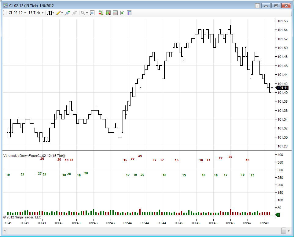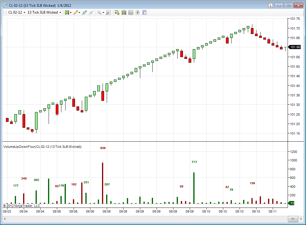 Vol UpDn Four (a)- Time = 1/6/2012 11:32:00 AM BarPeriod = 1 Min Max Volume = 3545
